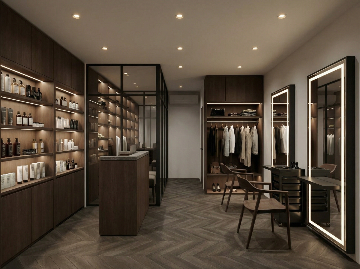 東京都内を中心に全国対応可能なサロンデザインを承ります。美容室・ネイル・エステなど多様な業態に合わせ、機能性と心地よさを両立した空間を提案。動線計画や照明、素材選びまでトータルでサポートし、ブランド価値を高める魅力的なサロンづくりを実現します。