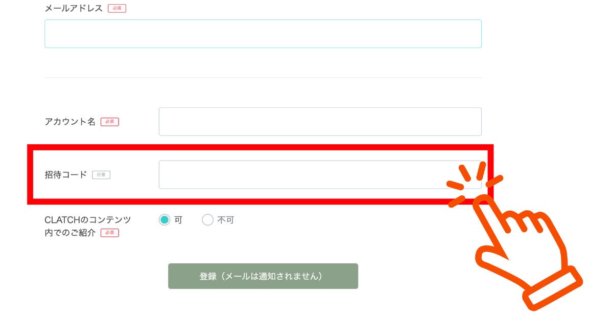②招待された方は、メールアドレス登録時に招待コードを記入してして登録